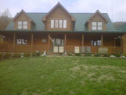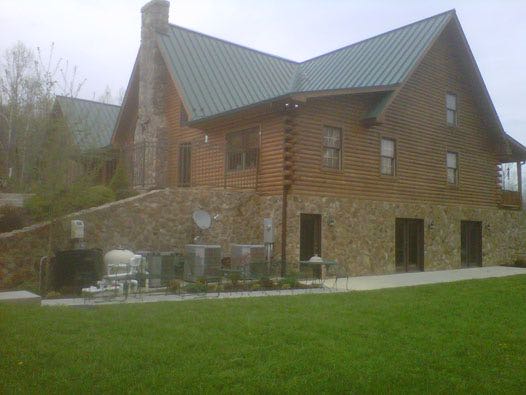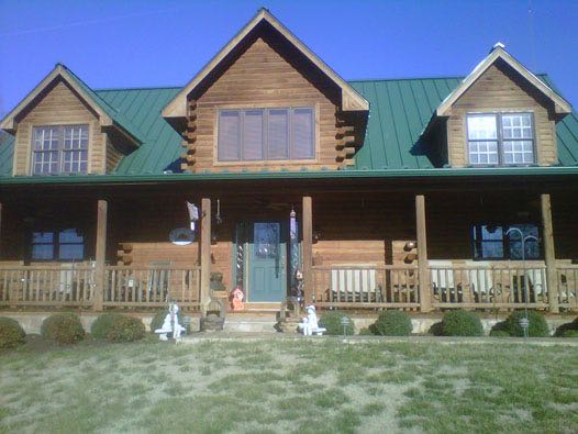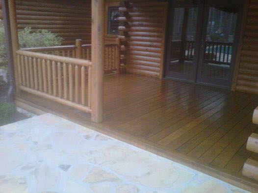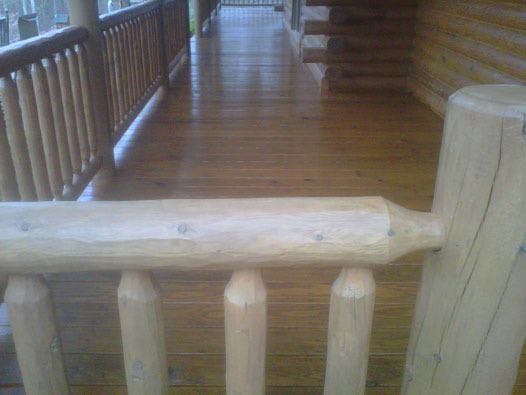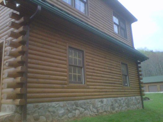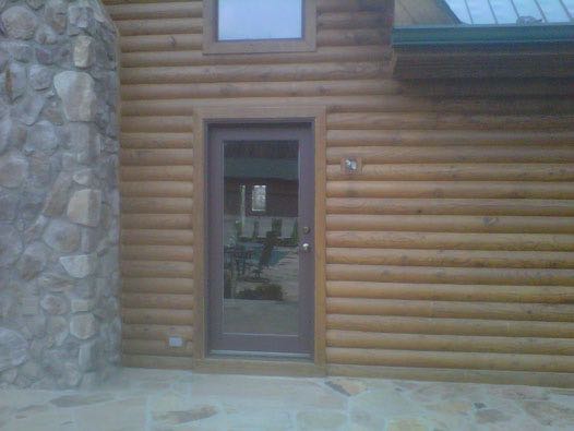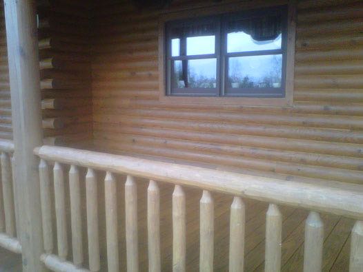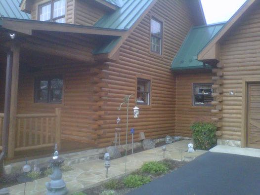 We removed the failing stain on this log home with an environmental safe stripper. Afterwards, we replaced the caulk as needed and applied two coats of stain with a clear top coat for added uv protection.