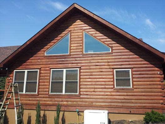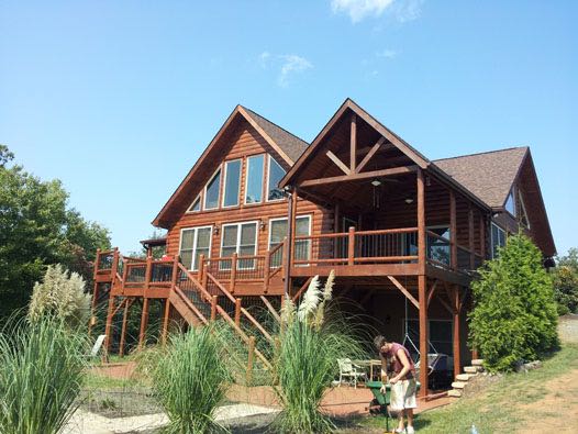 Our log cabin is two years old. It had the initial treatment of stain and additives to protect the logs and the color of the stain. However, the stain protection did not last and the stain could literally be wiped off with your hand. We were fortunate to meet Dennis of TPC Restoration at a log home show. We listened to his presentation and were impressed with his knowledge and experience staining log cabins. Dennis visited our cabin and provided us with a thorough evaluation of what needed to be done to repair, stain and protect our cabin. We had numerous checks in our logs and wooden posts and balusters for our front porch and rear deck. After contacting Dennis’ references, we signed a contract for him to remove the old stain, fill in the checks, and then to stain and apply a topcoat to our cabin.
