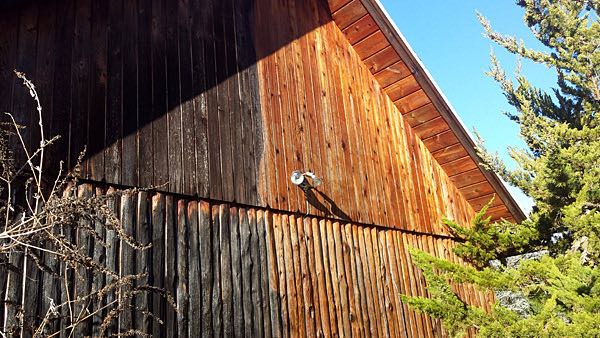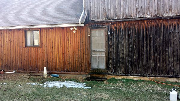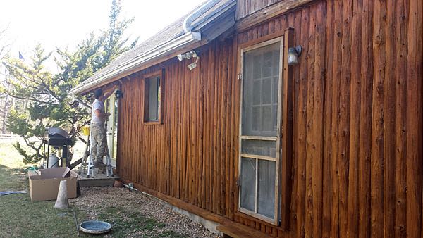 logs were dark and weathered and a misguided attempt at sealing the logs left
