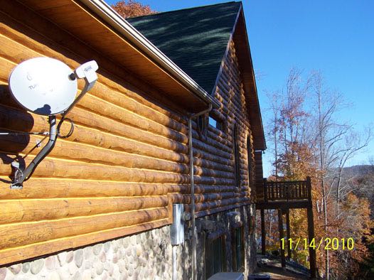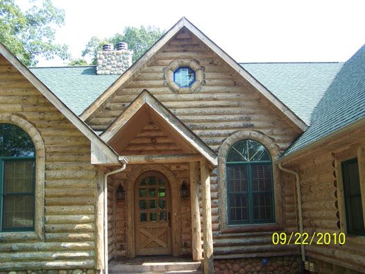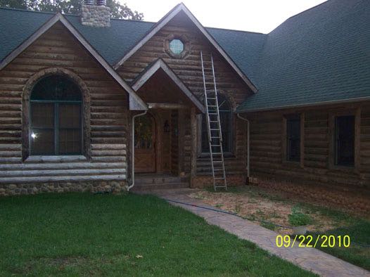 This log home needed a simple pressure cleaning with environmentally safe wood cleaners to remove and kill the mold and mildew.  The existing caulk was pulling away from the logs due to settling and shrinking, so we recaulked all the exterior logs.  Then we applied two coats of a log home stain and one top coat for added UV protection.